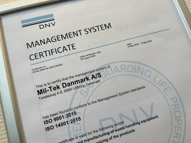 Mil-tek balers and compactors are built to last. Mil-tek A/S and Mil-tek USA comply to rigorous safety standards including ANSI (American National Standards Institute), we use 98% recyclable material, and we coat all our balers with a high quality, anti-corrosion powdered enamel finish to protect the surfaces. We carry out stress tests on all aspects of the machines; from the pressing plate to the cylinders, on all springs, valves and gauges to ensure that your Mil-tek machine is working at its optimum.