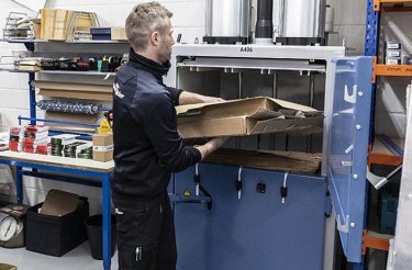 The site survey determined that the A406 baler model was the right solution. With a broader door frame the A406 allowed easy loading of bulky cardboard and boxes on site, while the existing compressed air line meant installation would be straightforward and efficient.
